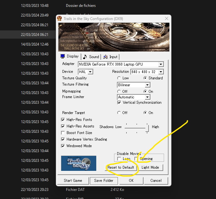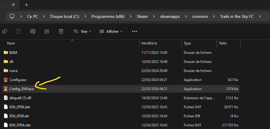 Se rendre dans le dossier du jeu et lancer l'outil de configuration "Config_dx9.exe"